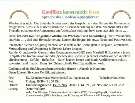 - 7. November 2025, 19:30: Konflikte konstruktiv lösen Weiter lesen